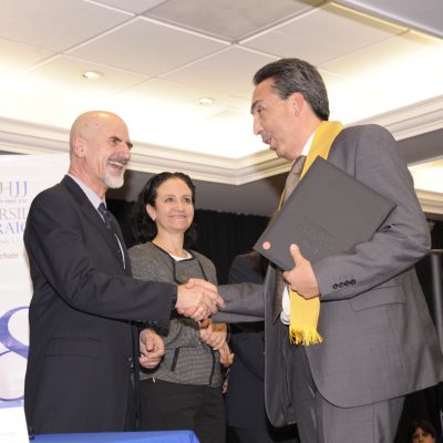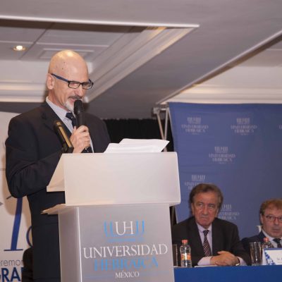 Posteriormente, los graduados, ataviados con estolas distintivas, entraron a la sala desfilando entre los aplausos de los asistentes. Una vez en sus lugares, comenzaron los discursos: Boris Braun, en nombre del Consejo Directivo, inició con unas palabras de reconocimiento al tesón de los graduados; Raquel Halabe, alumna de LaOfek, habló por los alumnos y manifestó su agradecimiento a la Universidad Hebraica por darles las herramientas que necesitan para innovar en sus respectivas áreas; Dafna Saslavsky, Directora del Departamento de Hebreo y a su vez, destacada graduada, nos dirigió unas hermosas palabras en hebreo sobre la importancia de la labor de difusión de esta lengua en México y América Latina; luego nuestro nuevo Rector, el Dr. Yehuda Bar-Shalom abundó en la trascendencia del trabajo de la Universidad Hebraica, institución que viene a dirigir gozoso.